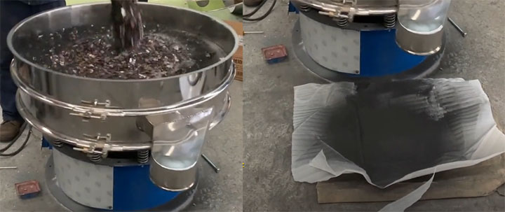 圓形振動篩是工業廢料中精篩的常見設備,它可以將粉末,小顆粒以及液體肥料篩分至500目,通過振動電機產生的振動力實現廢料的分級,過濾,除雜,配1-5層篩網,處理量可達3000公斤,對200目以上的較細粉末配彈跳球清網,防止網孔堵塞。